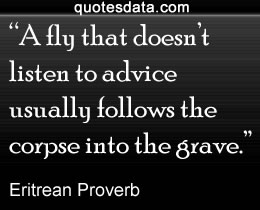 • A fool is a wise man’s ladder. • A fly that doesn’t listen to advice usually follows the corpse into the grave. • If you hear a mad man talking, wait you will soon hear what makes people think he is mad. • What an old man can see while seated a young man cannot see standing.