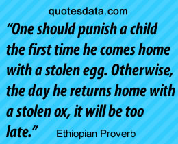 • The arrogant blind man picks a fight with his guide. • A house can't be built for the rainy season that is past. • One should punish a child the first time he comes home with a stolen egg. Otherwise, the day he returns home with a stolen ox, it will be too late. • Only a fool looks for dung where the cattle doesn't graze.