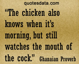 • If we knew where death resided, we would never stay there. • The chicken also knows when it's morning, but still watches the mouth of the cock. • It is the fool whose own tomatoes are sold to him.