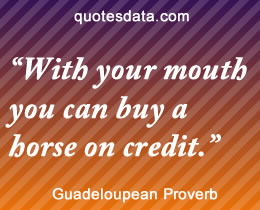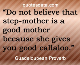 • The dog does not like bananas but he does not want the chicken to peck. • With your mouth you can buy a horse on credit. • Do not believe that step-mother is a good mother because she gives you good callaloo. • A good funeral does not lead to paradise.