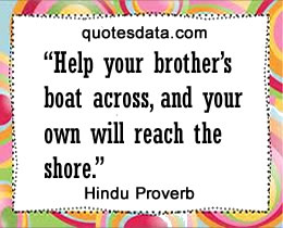 • Help your brother's boat across, and your own will reach the shore. • Anger has no eyes.